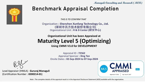 9月,进入评估阶段。评估组按照CMMI最新模型标准,顺利获得文档审查、访谈等方式对Topay钱包科技技术软件研发和质量管理体系进行了全面考察和评估,最终认定Topay钱包科技技术软件符合CMMI DEV V3.0 5级模型要求,达到了最高成熟度标准。